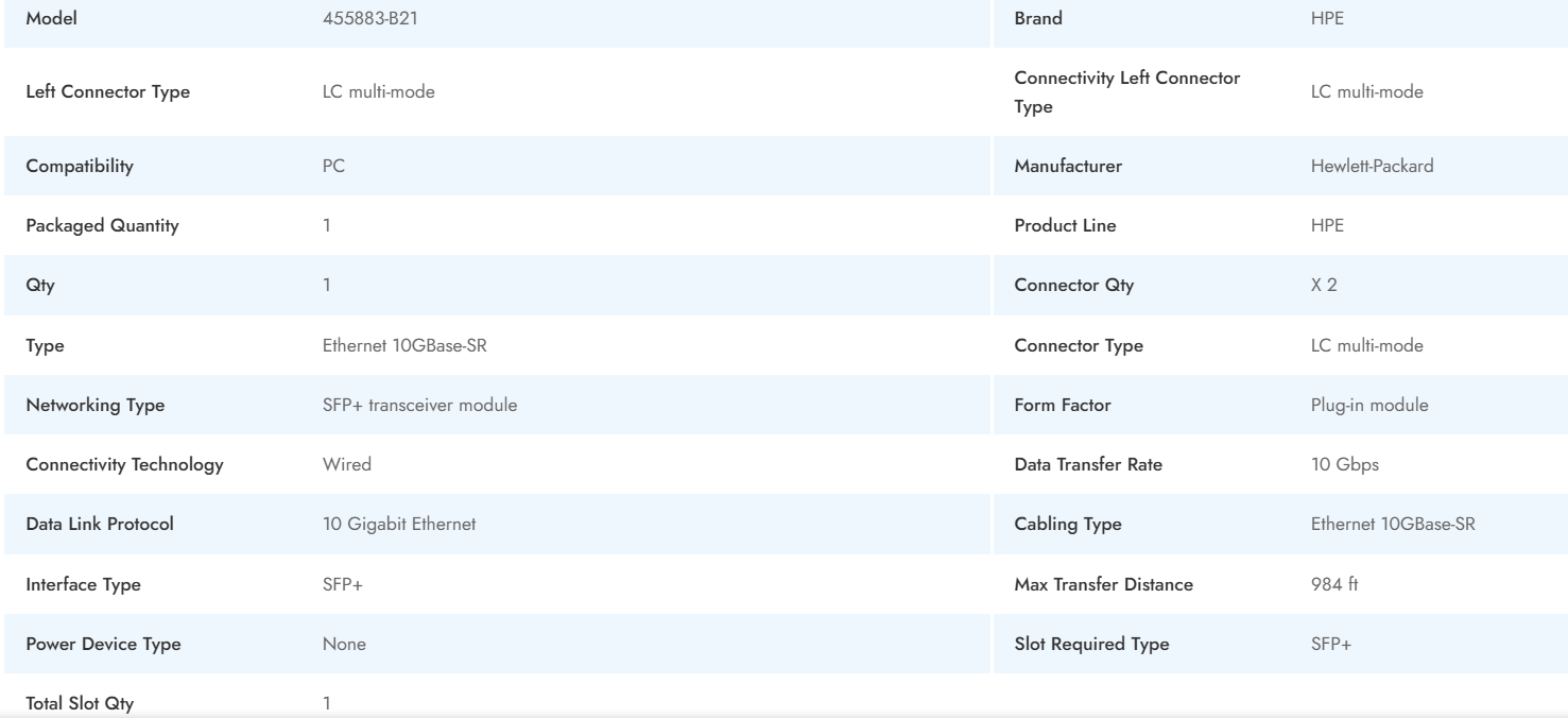 مدل 455883-B21 برای پشتیبانی از لینکهای پرسرعت داده مهندسی شده و گزینهای ایدهآل برای سازمانهایی است که قصد دارند زیرساخت شبکه خود را با راهکاری مطمئن، کارآمد و کارا ارتقا دهند. چه در دیتاسنتر مورد استفاده قرار گیرد و چه در شبکههای سازمانی، ترنسیور HPE 455883-B21 به افزایش بهرهوری عملیاتی و کارایی کلی شبکه کمک شایانی میکند.