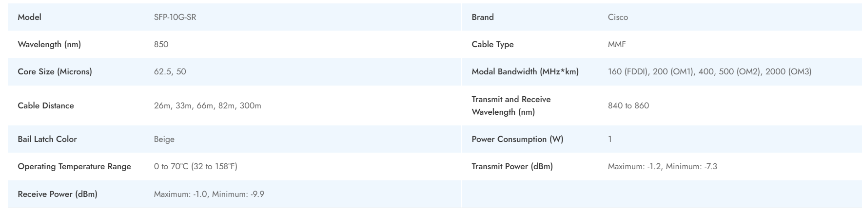 ماژول Cisco SFP-10G-SR یک ماژول SFP با کارایی بالا است که برای راهکارهای شبکهای در سطح سازمانی طراحی شده است. این ماژول بهعنوان محصولی قابلاعتماد از برند Cisco، اتصال پایدار و قابلیت انتقال داده کارآمد را با استفاده از استاندارد SFP-10G-SR فراهم میکند.